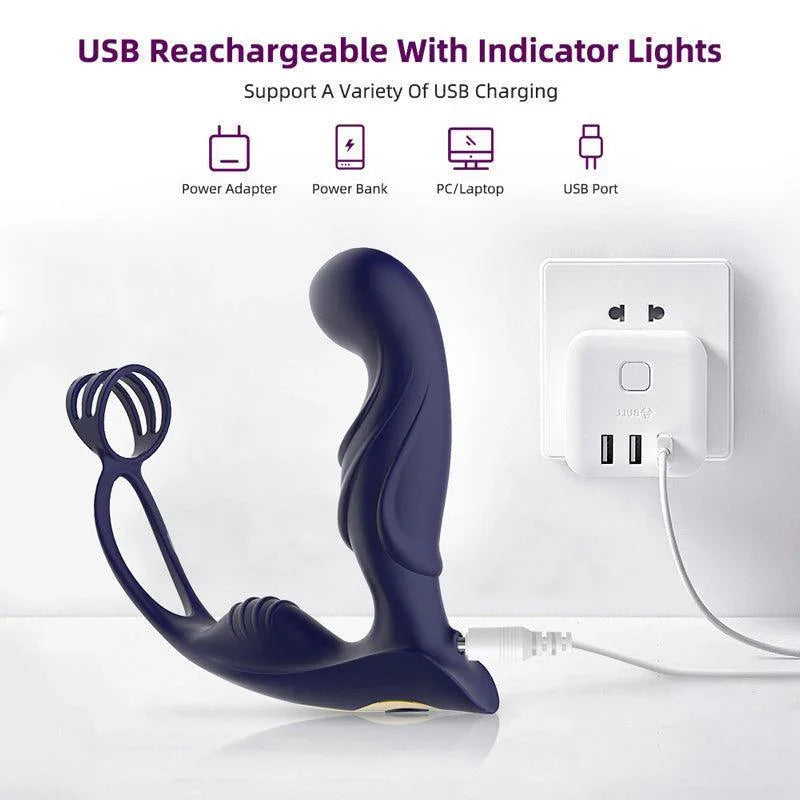 Deep P spot Massage Prostate Vibrating Toy with Penis Ring