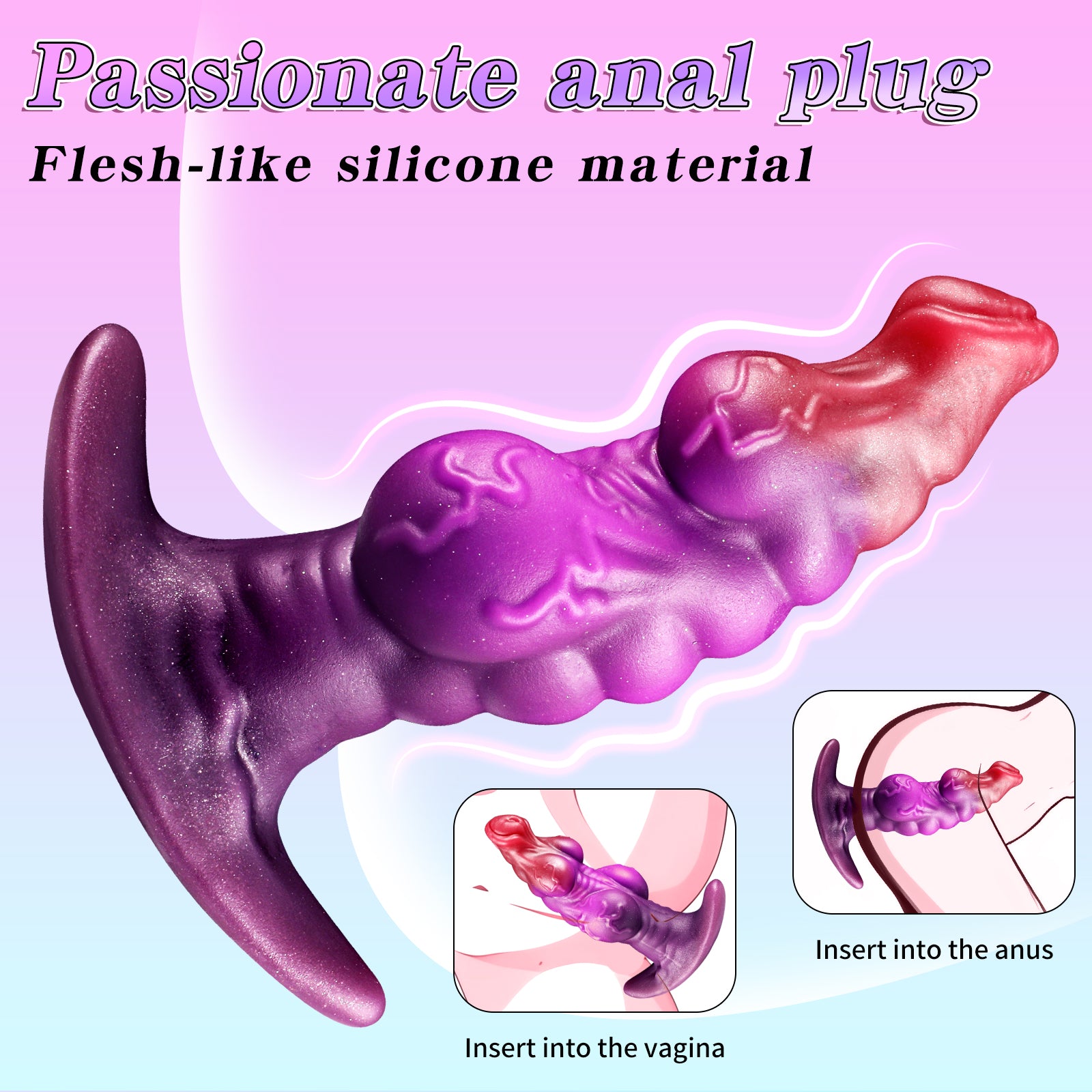 This monster dog anal plug dildo is available in 4 different sizes, making it suitable for both anal and vaginal use. Whether you are a beginner or an experienced user, there is a size that fits your needs. The textured back design provides gradual, layered stimulation. The largest size offers up to 8.27 inches total length with a 6.69-inch insertable length, ideal for advanced users. Beginners are recommended to start with the small size and gradually work up to the knotted dildo designs.